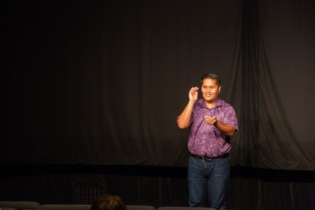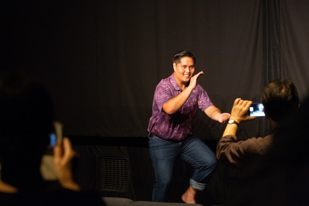 最後に、フラの踊りも披露していただきました。手拍子の手ほどきを受け、さて本番!どうですか、この楽しそうな表情!顔や胸などビチャビチャ叩きながら踊る独特なパフォーマンスで、見る側も釘付けになりました!この短い時間では勿体な過ぎる企画でした。ぜひもう一度観たい!